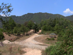 10 мин. преди заставата се излиза на горска поляна, където маркировката се губи. Минахме по пътя, който заобикаля гората отляво, стига се билото, пътя завива наляво, но не е най-левия път - накратко тръгва се по най-употребявания черен път и в ниското се виждат сградите на заставата и беседката